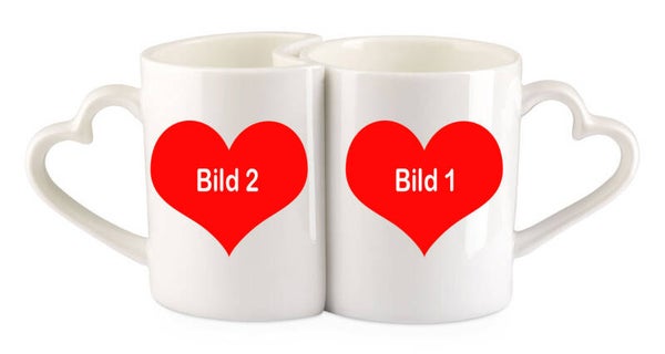 Dieses Set besteht aus zwei hochwertigen weißen Keramiktassen mit herzförmigen Henkeln. Eine der zwei Tassen ist nach innen gewölbt, daher können beide zu einem Paar zusammengestellt werden. Lassen Sie zwei Motivtassen zu einer verschmelzen. Das Set beinhaltet eine weiße Geschenkverpackung.